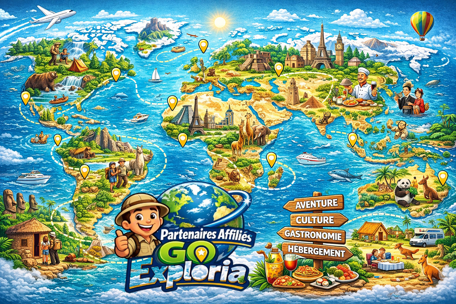 Les Partenaires Affiliés GO Exploria constituent un réseau stratégique international de personnes, organisations et de professionnels qui créer ensemble la force numérique du Québec et de leurs destinations d'origines, avec une plateforme numérique stable et la plus complète possible, afin d'informer le grand public des offres touristiques et d'affaires disponibles.