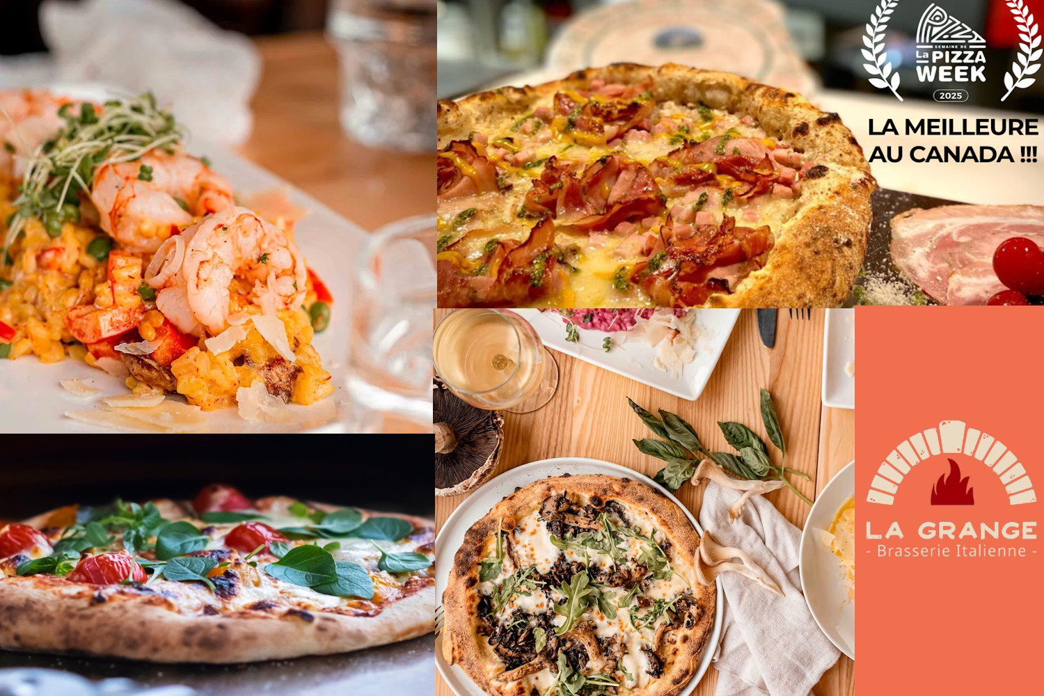 La Grange Brasserie italienne est née en 2023 de la passion de quatre entrepreneurs de la région — Rémi Bolduc, Éric Saint-Hilaire, Lucie Boudreau et Sébastien Gagnon — unis par leur amour de la restauration, des produits locaux et de la convivialité. On y savoure des risottos crémeux, des arancinis savoureux, des pizzas cuites dans un véritable four napolitain et des pâtes réconfortantes, préparées dans le pur respect de la tradition italienne. Chaque visite à La Grange, c’est un moment de partage, d’authenticité et de plaisir, au cœur de l’une des plus belles tables de la région.
