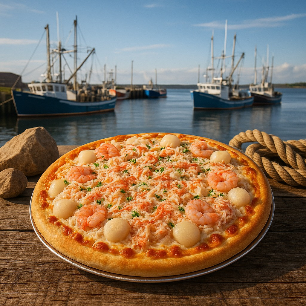 Notre fameuse pizza aux fruits de mer, faite avec de la véritable chair de crabe des neiges, cuite et préparée directement dans notre usine, sera enfin disponible dans notre machine à pizza !