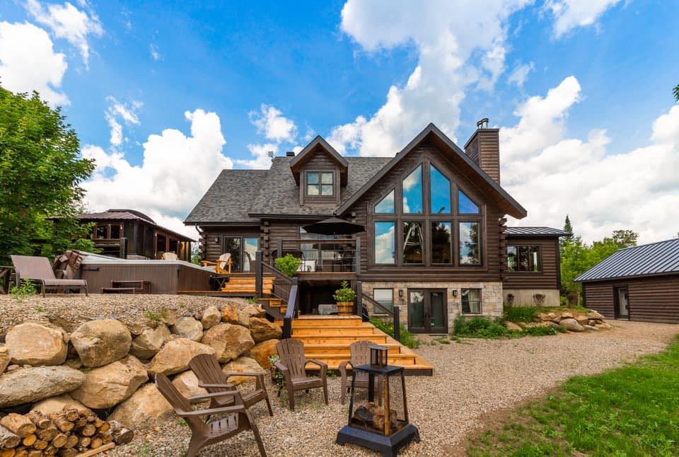 Chalet en bois surplombant le Lac Taureau à 3 kms du village et de toutes les commodités, sur 310.000 pieds carrés de bois et forêt, composé de :